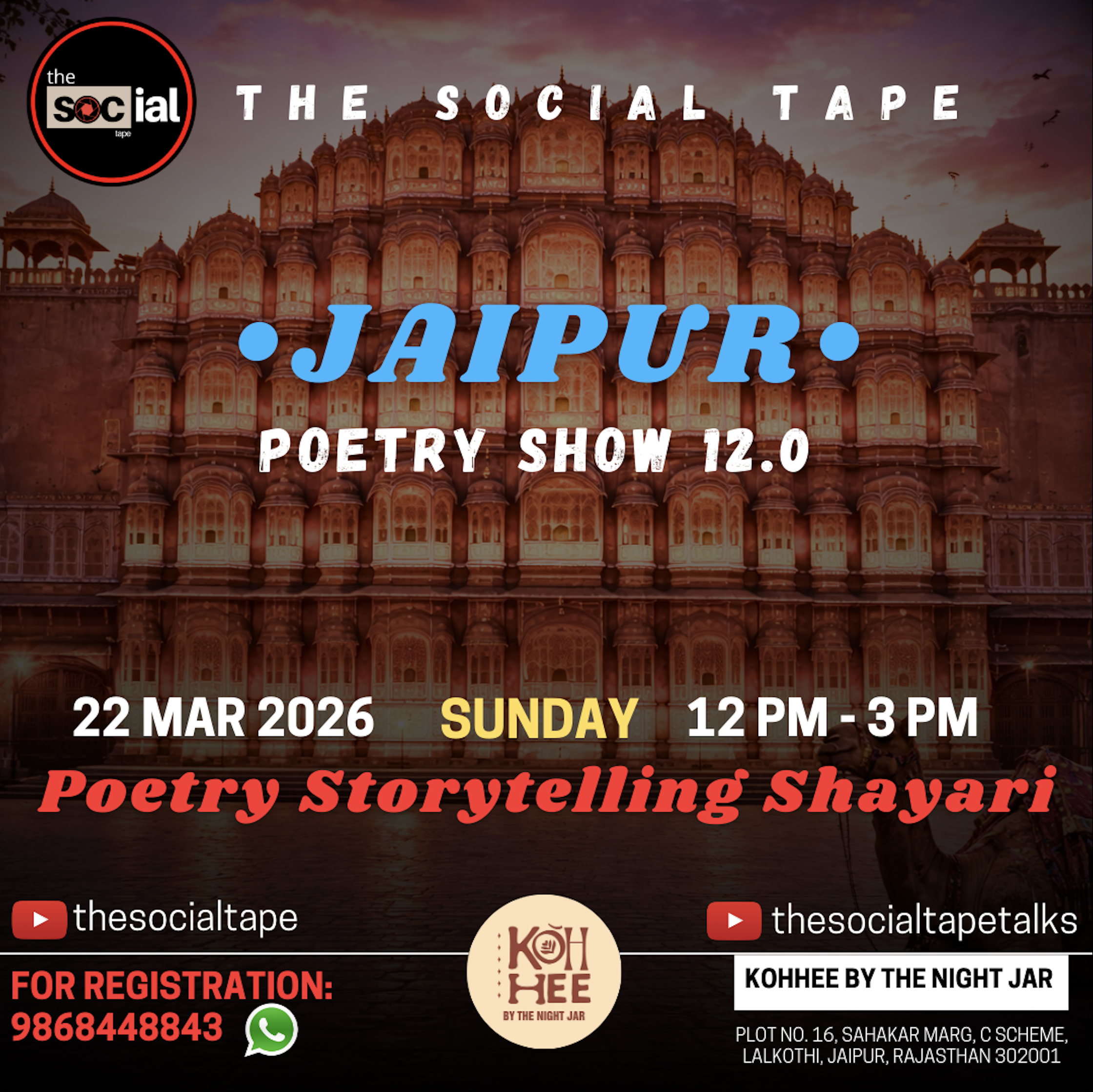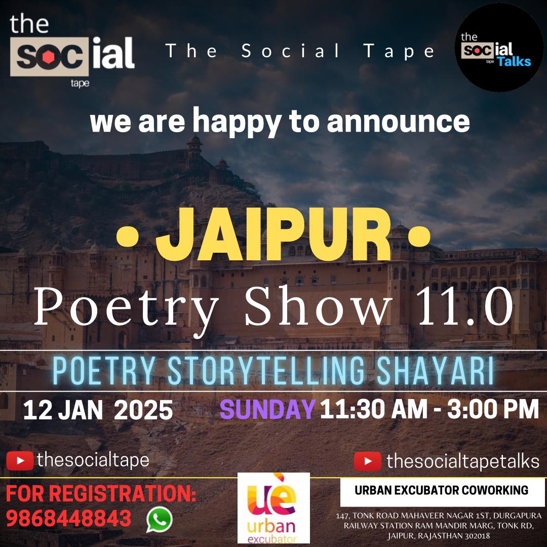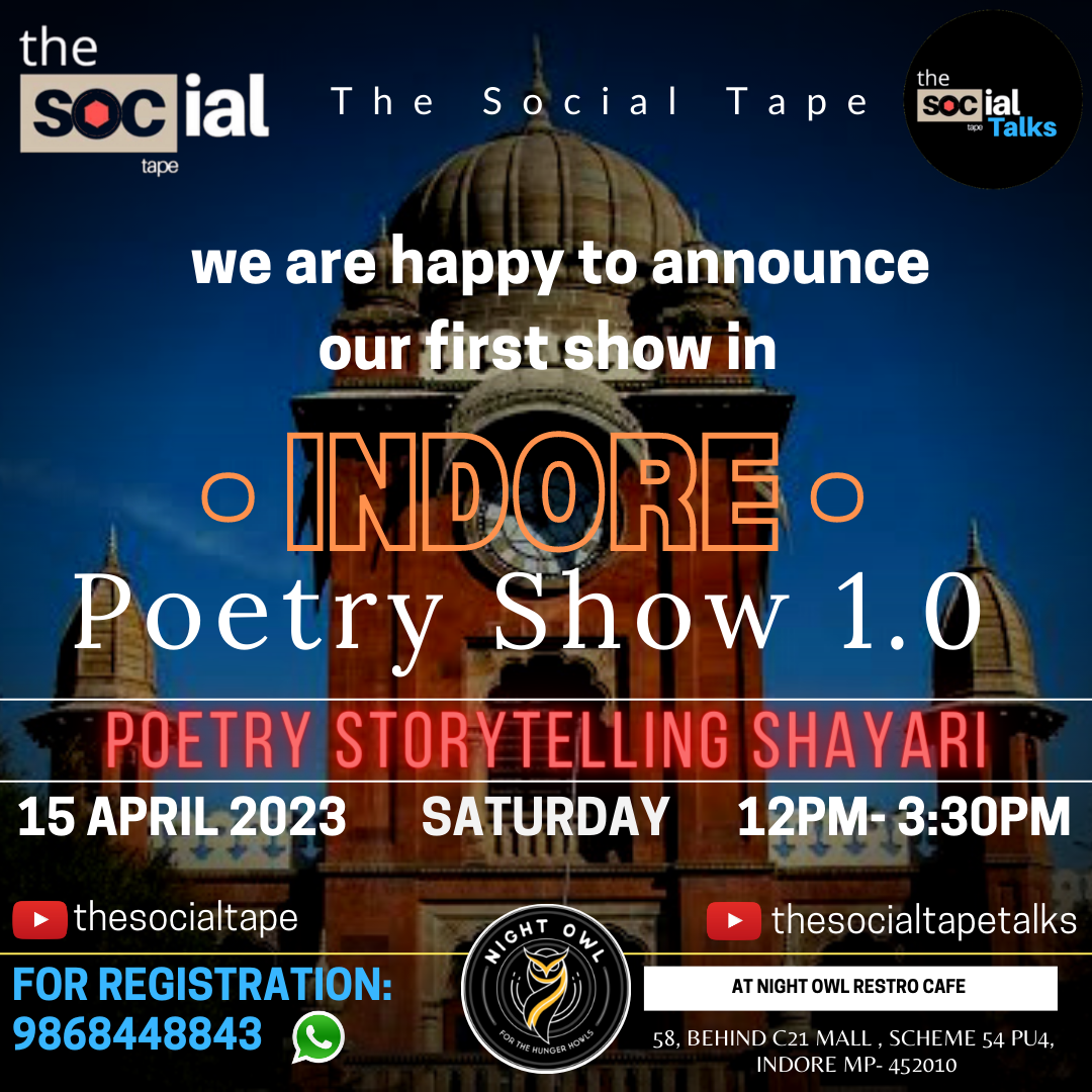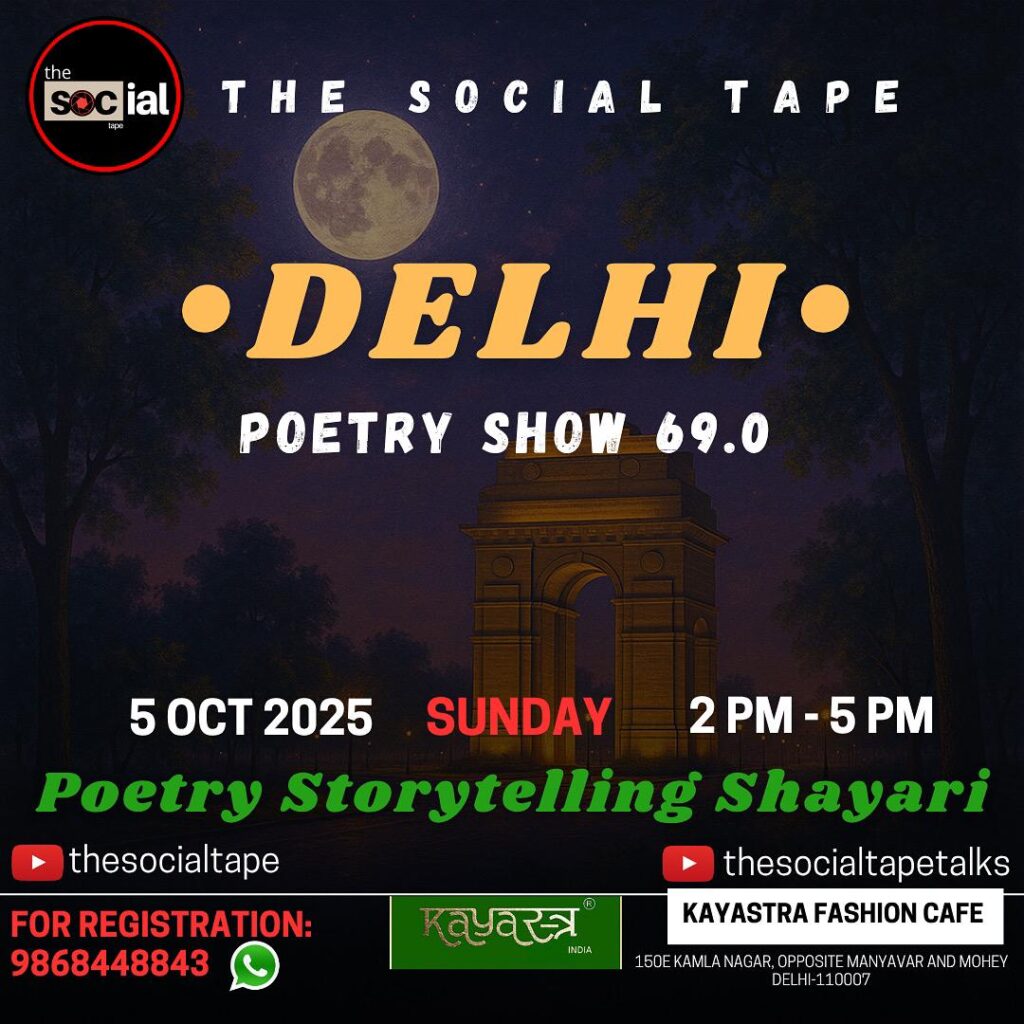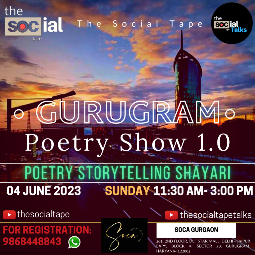 Every writer and Every Artist needs their very first platform to perform. Hence, we THE SOCIAL TAPE are here again to provide you a platform with an opportunity to bring out your creativity from the depths of your ocean out into the world. And not just once, again and again till you are ready to give your autographs out as a star! So, we invite all the poets, storytellers and shayars to come and recite their awesome stuff and have a wonderful time together. For more query contact on this no. 9868448843